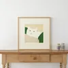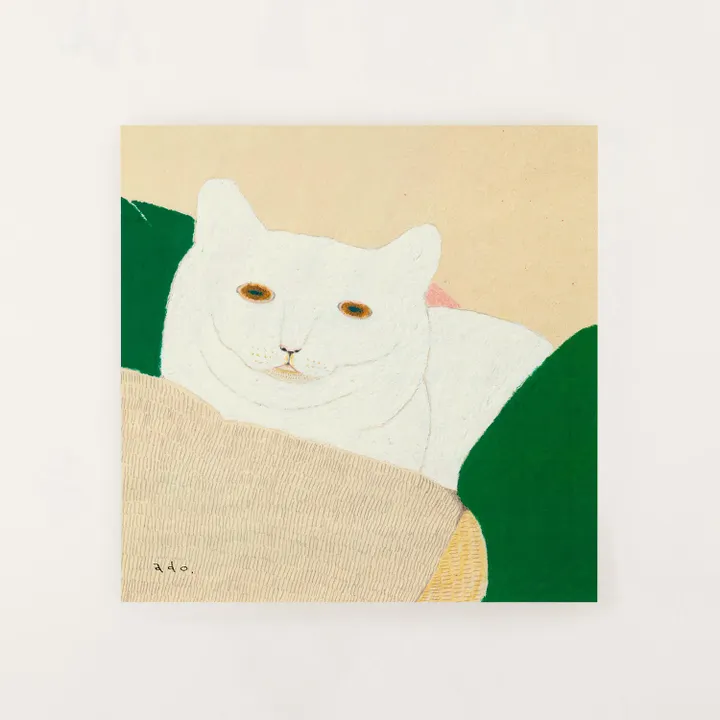 *Frame sold separately A white cat is staring at us as if snuggling up on a bright green cushion. It is a piece with a lot of highlights, such as the texture of the fur, amber eyes, and the delicate texture of the fabric, which are drawn with a delicate touch unique to ADO. The sight of the cat relaxing comfortably will soothe the hearts of those who see it. < Designer Profile > ado Makiko Watanabe A painter who loves living things. While studying at the Faculty of Animal Husbandry, Tokai University, he stayed in Kenya for a short time to engage in wildlife conservation. I thought there was something I could do about animals and started working on them. After graduating, he worked as a temporary staff member of the Kumamoto City Zoo and Botanical Garden, and continues his activities while searching for expressions of life between humans and animals. <About the Paper> It is a high-quality printing paper that achieves a high level of contradictory properties of good color development and paper texture, and is made of the thickest paper from Van Nouveau V-FS, which has also obtained FSC certification*. *FSC certification evaluates and certifies whether forest management and logging are carried out in consideration of the environment and local communities, and certifies that products derived from such forests (products made from properly managed forest wood). It is operated by the NGO FSC (Forest Stewardship Council®, Germany). < size variations> ・200×200mm ・300×300mm