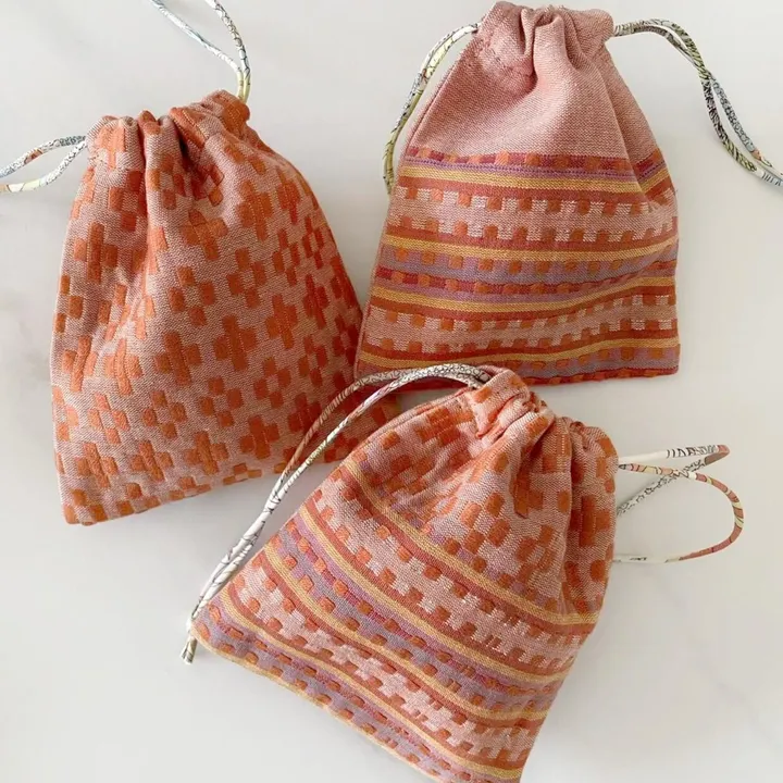 This colorful drawstring bag is made using Myanmar's traditional cloth "longy".