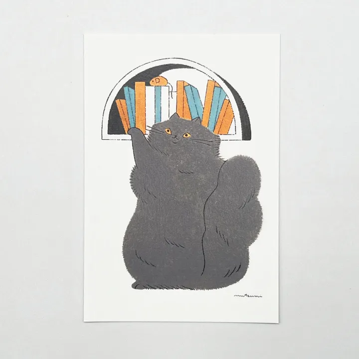 "Cat on the Bookshelf by MutsumiKawazoe" This is a postcard drawn by a cat-loving creator that takes shape from the cat's preference. You can display it in your room, give it as a greeting card, or attach it as a message card as a gift. ♪ Find your "favorite cat".
