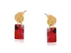 4045 Aurora Petite Resin Square Stud Earrings DEEP RED