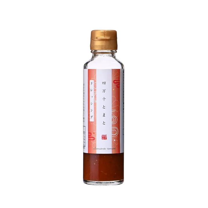In Shimanto Town, Kochi Prefecture, located in the Shimanto River basin, "Dressing made mainly from tomatoes grown using the most advanced technology cultivation method (long-term multi-stage cultivation) that harvests fruits from a single seedling for a long time and many times. No preservatives are used, and the characteristics of the ingredients are maximized. The unique acidity of the dressing is subdued, and onions, garlic, tomato paste, etc. are added to create a rich flavor.