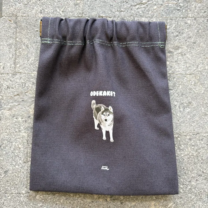 New for 🌼 2026 [L size / thick fabric] Original illustration Doggie drawstring pouch Popular as a gift Siberian Husky / Spring Mouth (Approx. 130×160mm)