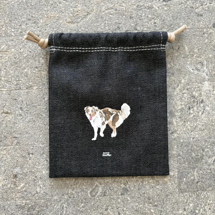 New for 🌼 2026 [L size / thick fabric] Original illustration Doggie drawstring pouch Popular as a gift Australian Shepherd
