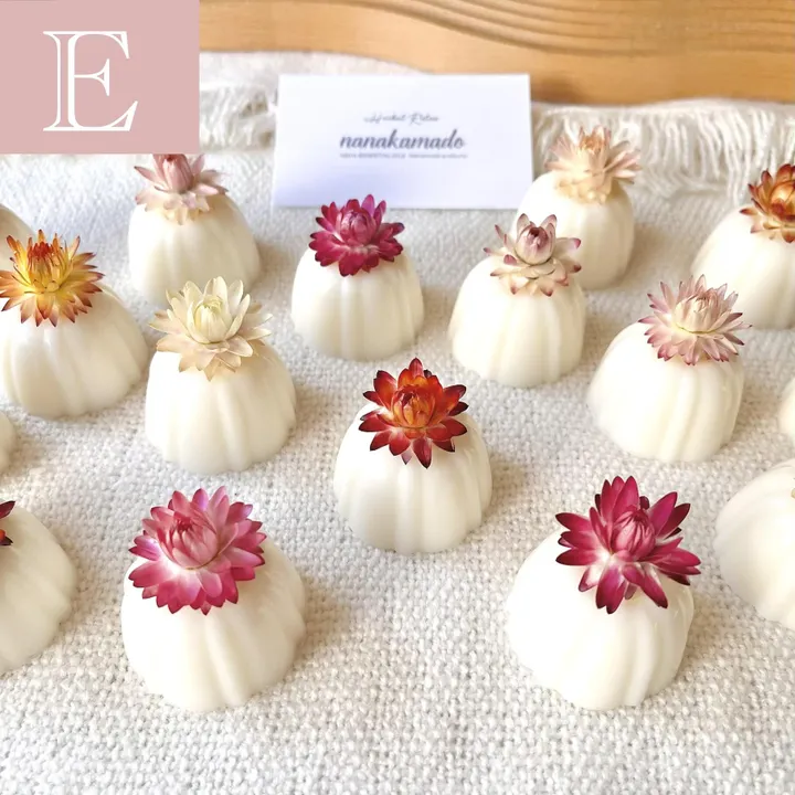 A gift of fragrance from nanakamado. A collage of 100% pure essential oils (aromatic essential oils) and real flowers (dried flowers) The design sachet is a one-of-a-kind stylish fragrance item in the world because it is all done by hand. It doesn't use fire, so you can rest assured anywhere. Put your thoughts on your loved ones and reward yourself for working hard again. [There are 10 types of base designs for design aroma sachets] A . B . C . D . E . F . G . H . I . Choose from J designs. The color of the dried flowers (helichrysum) at the top is random. [You can choose from 5 different scents] ●Lavender Lavender is characterized by its refreshing and floral scent. It is recommended when you are stressed, anxious, or have trouble falling asleep, as it can be expected to have a relaxing effect. ●Eucalyptus lemon Eucalyptus lemon can be expected to have a calming effect that calms the mind. Along with citronella, it is famous as an essential oil with a high insect repellent effect, but it is also recommended for relaxation time before bed. ●Tea tree Tea tree has a refreshing sensation and a gentle scent like a woody forest. It relieves mental anxiety and can be expected to have a refreshing effect when you are depressed due to fatigue or stress. ●Lemongrass Lemongrass has a refreshing scent like lemon. The scent can also be expected to have effects such as mental concentration, refreshment, anxiety and stress reduction, and tension relief. ●Rosemary Rosemary is known to improve concentration and memory. It is characterized by a slightly strong, refreshing scent. It has a variety of effects that relieve physical and mental fatigue, and can be expected to wake up drowsiness and relieve stress and mental fatigue. The base ingredients for the aroma wax sachet are made from 100% natural vegetable wax (soy wax), which is mainly made from soybean oil, which is gentle and safe to use, and beeswax (beeswax wax), a natural material that is refined from bee nests, and is blended with aromatic essential oils. This is a stylish fragrance item that collages aromatic scents and real flowers (dried flowers). Since everything from the selection of flowers (dried flowers) is done by hand, no two are the same, and it will be "your own aroma sachet". The color of the dried flowers (helichrysum) on the top is random. [No fire is used, so you can rest assured anytime, anywhere] There is no need to light a fire, so it is safe even for families with small children or pets. Even in places where you have given up on fragrance, such as in the entrance, toilet, or drawer, you can easily enjoy a natural aromatic bath. [Wrapping one by one] It is delivered individually in an organza bag. Place it on shelves, side tables, bedsides, entrances, toilets, closets, etc. as interior decorations and enjoy the gentle aromatic scent.