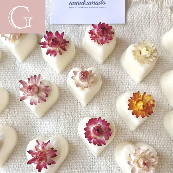 A gift of fragrance from nanakamado. A collage of 100% pure essential oils (aromatic essential oils) and real flowers (dried flowers) The design sachet is a one-of-a-kind stylish fragrance item in the world because it is all done by hand. It doesn't use fire, so you can rest assured anywhere. Put your thoughts on your loved ones and reward yourself for working hard again. [There are 10 types of base designs for design aroma sachets] A . B . C . D . E . F . G . H . I . Choose from J designs. The color of the dried flowers (helichrysum) at the top is random. [You can choose from 5 different scents] ●Lavender Lavender is characterized by its refreshing and floral scent. It is recommended when you are stressed, anxious, or have trouble falling asleep, as it can be expected to have a relaxing effect. ●Eucalyptus lemon Eucalyptus lemon can be expected to have a calming effect that calms the mind. Along with citronella, it is famous as an essential oil with a high insect repellent effect, but it is also recommended for relaxation time before bed. ●Tea tree Tea tree has a refreshing sensation and a gentle scent like a woody forest. It relieves mental anxiety and can be expected to have a refreshing effect when you are depressed due to fatigue or stress. ●Lemongrass Lemongrass has a refreshing scent like lemon. The scent can also be expected to have effects such as mental concentration, refreshment, anxiety and stress reduction, and tension relief. ●Rosemary Rosemary is known to improve concentration and memory. It is characterized by a slightly strong, refreshing scent. It has a variety of effects that relieve physical and mental fatigue, and can be expected to wake up drowsiness and relieve stress and mental fatigue. The base ingredients for the aroma wax sachet are made from 100% natural vegetable wax (soy wax), which is mainly made from soybean oil, which is gentle and safe to use, and beeswax (beeswax wax), a natural material that is refined from bee nests, and is blended with aromatic essential oils. This is a stylish fragrance item that collages aromatic scents and real flowers (dried flowers). Since everything from the selection of flowers (dried flowers) is done by hand, no two are the same, and it will be "your own aroma sachet". The color of the dried flowers (helichrysum) on the top is random. [No fire is used, so you can rest assured anytime, anywhere] There is no need to light a fire, so it is safe even for families with small children or pets. Even in places where you have given up on fragrance, such as in the entrance, toilet, or drawer, you can easily enjoy a natural aromatic bath. [Wrapping one by one] It is delivered individually in an organza bag. Place it on shelves, side tables, bedsides, entrances, toilets, closets, etc. as interior decorations and enjoy the gentle aromatic scent.
