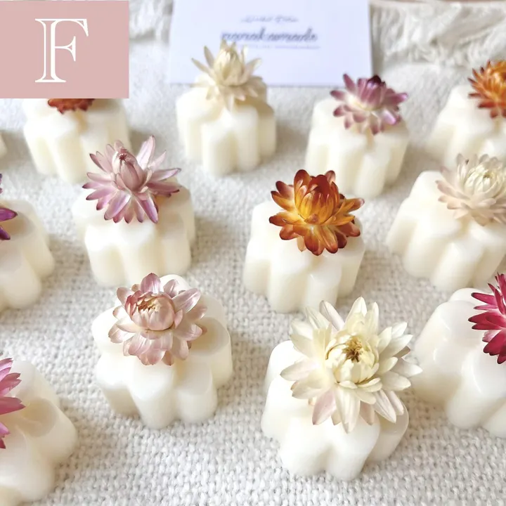 A gift of fragrance from nanakamado. A collage of 100% pure essential oils (aromatic essential oils) and real flowers (dried flowers) The design sachet is a one-of-a-kind stylish fragrance item in the world because it is all done by hand. It doesn't use fire, so you can rest assured anywhere. Put your thoughts on your loved ones and reward yourself for working hard again. [There are 10 types of base designs for design aroma sachets] A . B . C . D . E . F . G . H . I . Choose from J designs. The color of the dried flowers (helichrysum) at the top is random. [You can choose from 5 different scents] ●Lavender Lavender is characterized by its refreshing and floral scent. It is recommended when you are stressed, anxious, or have trouble falling asleep, as it can be expected to have a relaxing effect. ●Eucalyptus lemon Eucalyptus lemon can be expected to have a calming effect that calms the mind. Along with citronella, it is famous as an essential oil with a high insect repellent effect, but it is also recommended for relaxation time before bed. ●Tea tree Tea tree has a refreshing sensation and a gentle scent like a woody forest. It relieves mental anxiety and can be expected to have a refreshing effect when you are depressed due to fatigue or stress. ●Lemongrass Lemongrass has a refreshing scent like lemon. The scent can also be expected to have effects such as mental concentration, refreshment, anxiety and stress reduction, and tension relief. ●Rosemary Rosemary is known to improve concentration and memory. It is characterized by a slightly strong, refreshing scent. It has a variety of effects that relieve physical and mental fatigue, and can be expected to wake up drowsiness and relieve stress and mental fatigue. The base ingredients for the aroma wax sachet are made from 100% natural vegetable wax (soy wax), which is mainly made from soybean oil, which is gentle and safe to use, and beeswax (beeswax wax), a natural material that is refined from bee nests, and is blended with aromatic essential oils. This is a stylish fragrance item that collages aromatic scents and real flowers (dried flowers). Since everything from the selection of flowers (dried flowers) is done by hand, no two are the same, and it will be "your own aroma sachet". The color of the dried flowers (helichrysum) on the top is random. [No fire is used, so you can rest assured anytime, anywhere] There is no need to light a fire, so it is safe even for families with small children or pets. Even in places where you have given up on fragrance, such as in the entrance, toilet, or drawer, you can easily enjoy a natural aromatic bath. [Wrapping one by one] It is delivered individually in an organza bag. Place it on shelves, side tables, bedsides, entrances, toilets, closets, etc. as interior decorations and enjoy the gentle aromatic scent.