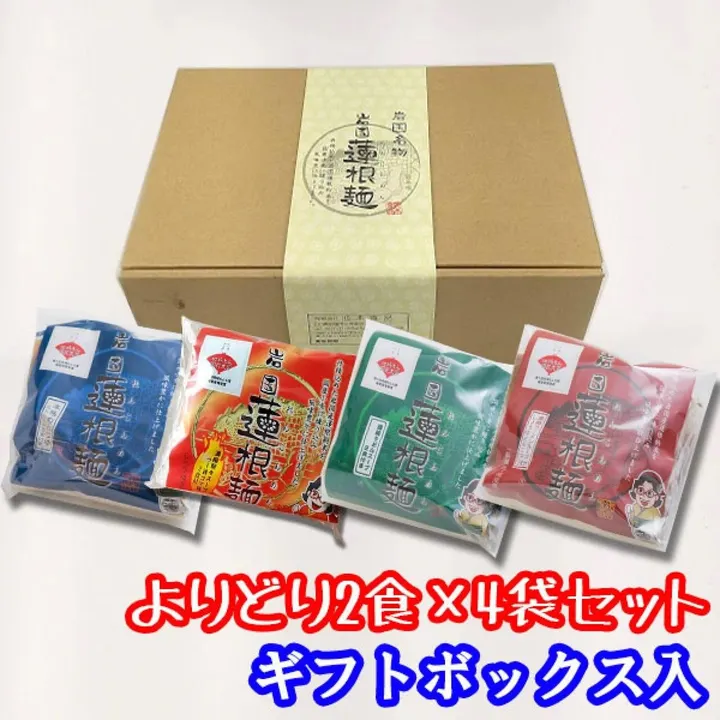 Buckwheat flour and Iwakuni lotus root powder without brine are kneaded into domestic wheat, and oyster bones from Hiroshima are added to give them a firm texture. I put the four types of lotus root noodles in a cosmetic box (2 servings). Perfect for gifts.
