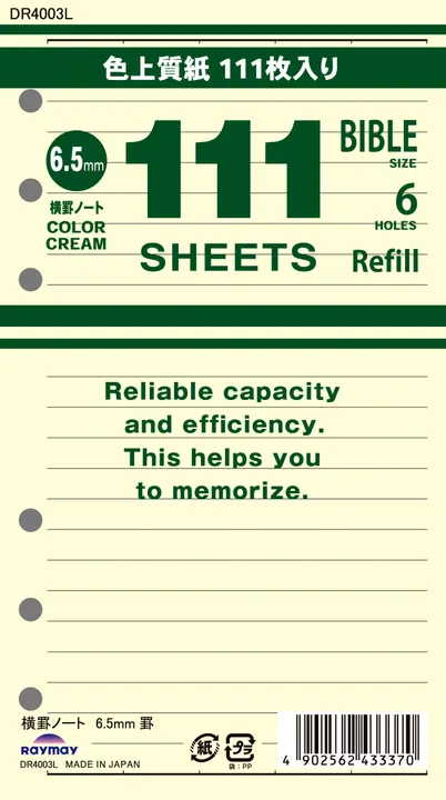 [For those who want to write a lot] 111 virtue refill Bible size Horizontal Bordered Notebook 6.5mm Bordered Cream