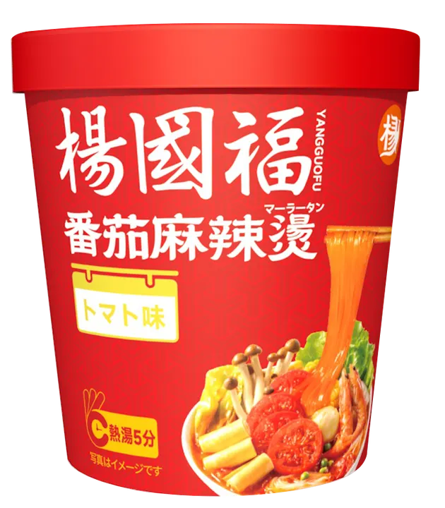 A cup type from the spicy soup chain "Yang Guofu", which has 6,000 stores in China. The "tomato (fanchie)" flavor has the mild acidity and sweetness of ripe tomatoes and the flavors of onions and ginger. It is also recommended for those who don't like spicy food and children. Pour hot water and enjoy the authentic taste at home in 5 minutes.