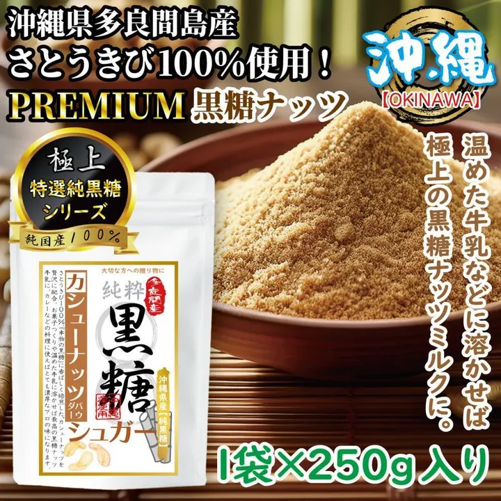 Brown sugar powder cashew nuts Pure brown sugar brown sugar brown sugar nuts PREMIUM Additive-free Tarama Island 100% sugar cane |250g× 1 bag 12