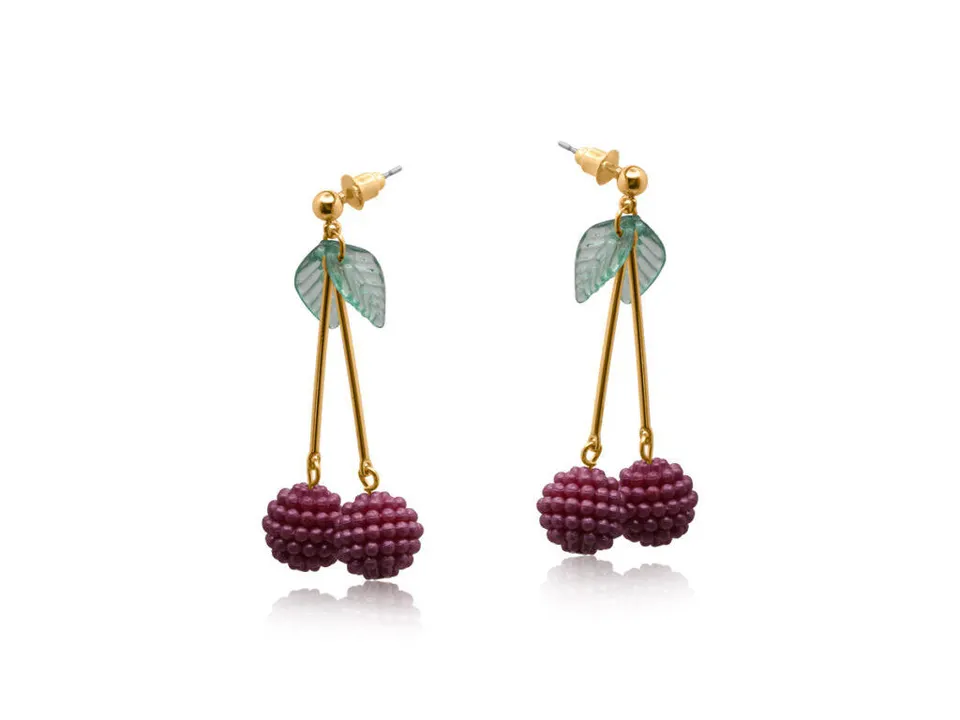 3741 Lilly Beaded Cherry Earrings PURPLE