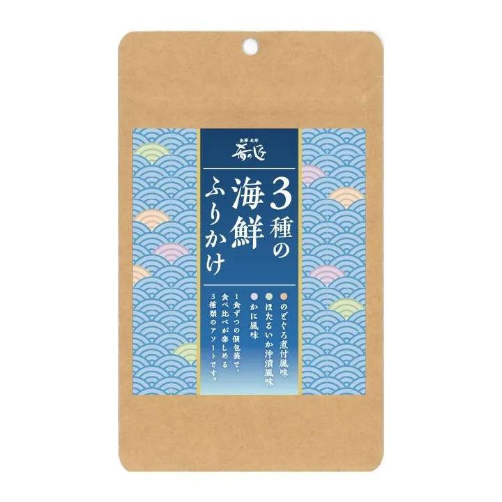 Roasted sesame seeds (domestically produced), glucose, potato flakes, starch, granulated soybean protein, sugar, akamutsu, bonito flavor granules (lactose, salt, bonito flakes powder, sugar, others), salt, soy sauce, glue, fermented seasoning, bonito flakes powder, powdered soy sauce, dried green onions, dextrin, dried okara, tomato powder, spices, vegetable extract powder/processed starch, Seasonings (amino acids, etc.), coloring (caramel, carotenoids, rack), shellfish Ca, sweeteners (licorice, stevia, acesulfame K), (some contain milk ingredients, wheat, mackerel, soybeans, and sesame seeds) [Firefly squid okizuke flavor furikake] Roasted sesame seeds (made in Japan), potato flakes, soy sauce, granulated soybean protein, glucose, granulated soy sauce (dextrin, soy sauce, salt), sugar, salt, Hotaru squid (from Hokuriku), starch, bonito flavor granules, glue, refined vegetable fat, bonito flakes powder, powdered soy sauce, dextrin, fermented seasoning, tomato powder, spices, vegetable extract powder/seasoning (amino acids, etc.), processed starch, coloring (caramel, carotenoids, rack), shellfish calcium, sweetener (licorice, stevia, acesulfame K), antioxidant (V.E), ( Some contain milk ingredients, wheat, shrimp, squid, mackerel, soybeans, and sesame seeds) [Crab flavored furikake] Potato flakes (made in the United States, made in Bangladesh), sesame, crab-flavored granules (maltose, starch, dextrin, salt, crab extract, etc.), glucose, crab-flavored kamaboko (fish minced meat, starch, reduced starch syrup, etc.), shrimp flavored granules (cornstarch, lactose, others), salmon-flavored granules , salt, glue, starch, soy sauce, sugar, dextrin, spinach powder, tomato powder/seasoning (amino acids, etc.), coloring (red yeast rice, rack, carotenoids, caramel), eggshell Ca, flavoring, antioxidant (V.E), sweetener (stevia, licorice), (some contain eggs, milk, wheat, shrimp, crab, salmon, soybeans, pork, gelatin, sesame seeds)