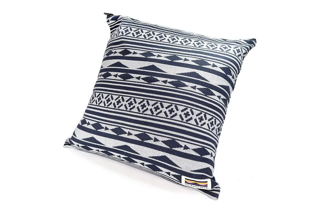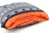 シュラフをクッションとして使用するための収納カバーです。 ファスナーの引手が大きくスムーズに開閉でき、ボリュームのあるシュラフも収まります。 カバーをつけることにより、シュラフとしてだけではなく、 自宅や車の中でクッションとして使用できます。 ※シュラフは付属しません。 - 瀬戸内ネイティブ柄 瀬戸内海に面する愛媛・香川の地域の特色を盛り込んでいます。 瀬戸内海、浮かぶ島々、泳ぐ魚たち、四国八十八ヶ所を図案化した八十八の文字で構成し、 今治タオルの製織技術から生まれた高級感のある織りで表現しています。