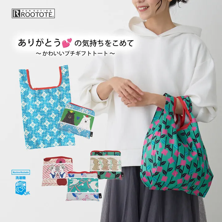 ありがとう!の気持ちをカタチでお伝えしたい。 そんな時にぴったりなプチギフトトート.。 毎日にときめきをまとわせる上品なフラワー柄。 かわいいパッケージで、選んで楽しい!もらってうれしい! 送った相手が日々の生活で少し幸せを感じられるような… ギフトに喜ばれるアイテムです。 いつも持ち歩きたいエコバッグ「ルーショッパー」 簡単コンパクト。 内ポケットに収納できて、ご使用時は大きく。 バッグの中にそっといれて持ち運びができます。 お出かけ先などで荷物が増えても安心! 何かと荷物が多くなりがちな旅行にも。 開き口が広く、モノの出し入れがスムーズ。 背面にはルーポケットがあり、スマホなどの取り出し頻度の高いアイテムを入れておけます。 コットンのような風合いがおしゃれ。 レッドカラーのパイピングのこだわりデザインです。 デイリー使いだから、いつでも清潔に。 洗濯可能で、衛生的に安心してご利用いただけます。