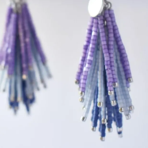 藤の花を連想させる花をもつクサフジ 無数に咲き誇るその花のグラデーションは 目を見張るほどに美しいものです マメ科の植物のため 羽状の葉をつけます material SILVER925(ピアス金具)、SILVER925 ロジュームメッキ(イヤリング金具)、ガラスビーズ、真鍮、チタン、シリコン *シルバービーズはパラジウムメッキ加工を施したものを使用しております *取り付ける金具によって、使用している金属が異なります size 約23x55mm weight 約6.1-7.4g *取り付ける金具によって、重さが異なります *CACICOの商品は全て1点1点制作しているため、個体差があり、商品写真と差がある場合がございます。ご了承の上、ご購入ください。 *金属アレルギーの方はご使用をお控えください *受注生産のため、ご注文確定後1週間〜10日以内に商品を発送いたします