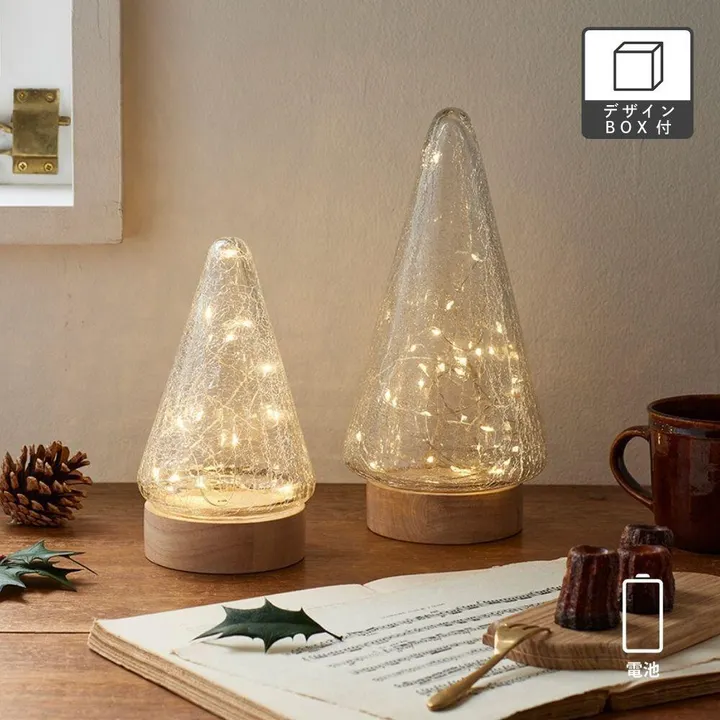 クラックガラスのLEDライト ツリー┃電池 クリスマス Lサイズ