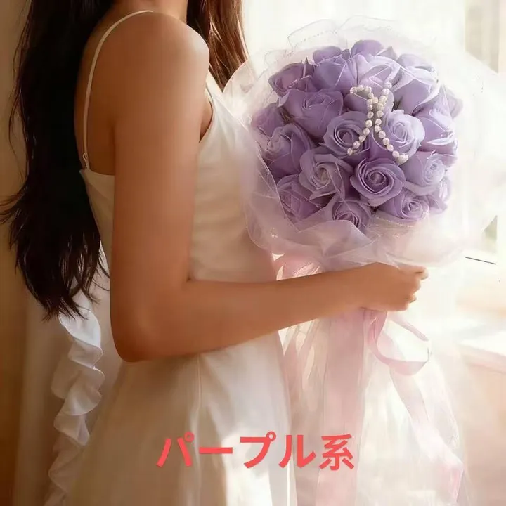 ※プレゼントに最適なソープフラワーの花束です。ほのかに石鹸の香りがする、石鹸素材から作られた造花なので、生花に比べて、長く鑑賞が楽しめます。 ※ソープフラワーとは花びら1枚1枚が石けんでできているお花です。 お花の大きさは生花と変わらない大きさでとっても華やかな上に枯れないので、 大切な思い出を美しいまま長く楽しむことができます。 ※ご注意:ソープフラワーは主に観賞用のみで、入浴剤としてのご使用はできませんので、ご注意ください。 ※金額が記載された書類(納品書・領収書等)は同封しておりません。 ※香りは全て同じではありません。香りが強い場合や弱い場合もあり、時間と共に香りは薄くなる場合がございます。 ※ハンドメイドで一つ一つお作りしてますので、同じものはございません。 ※包装紙は梱包や発送途中にシワや折れ目等が生じてしまう場合がございますが、ご理解いただいたうえ、ご注文をお願いいたします。 ※様々な用途に対応した万能ギフト 誕生日プレゼント、記念日、お見舞い、快気祝い、内祝い、出産祝い、引っ越し祝い、開店祝い、結婚祝いなど、人生の節目に贈るギフトとして多くの方に選ばれています。 また、仏花・供花・お供え用としても使用されるなど、幅広いニーズに応えるアイテムです。 ※ギフトとして: 大切な人へ贈る際にも、ゴージャスな印象を与えることができます。長期間枯れることなく飾って楽しめるため、プレゼントした時の思い出を残したい場合にもぴったりです。 ※母の日や卒業式などの特別な日にもぴったりです。枯れることのない造花なので、長期間保存も可能。お部屋のインテリアとしてもお楽しみいただけます。品質にも自信を持っており、品質保証付きです。大切な人への心のこもった贈り物として、是非ご検討ください。 ※直射日光や高温多湿の場所は避け、風通しの良い場所で保管してください。 豪華プラス・長持ちする枯れない花(Soap flowers)//ソープフラワーとは本物の花を一切使用せずに、香りのよい石鹸素材のみで作られたお花というものです。安いですが、生き生きしており、本物とそっくりですが生花とは違って枯れることがありません。 花粉症の方にも安心な魔法の花(Artificial flowers)//生花と違い、淡い石鹸の匂いがして、細菌の繁殖がなく、この石鹸花は花粉がありませんのですから、お花が好きの花粉アレルギーの方へもいい品物です。アレルギーが心配な方や病室などでも安心して飾ることができます。 手間がかからなく・持ち運びしやすい花束(Gift flowes)//水やりや肥料をあたえるお手入れが不要、ほこりが付いたら軽くティッシュでふき取る程度の手入れをするだけで大丈夫です。