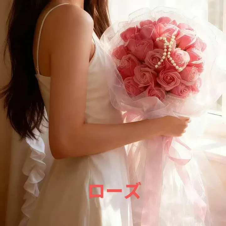 ※プレゼントに最適なソープフラワーの花束です。ほのかに石鹸の香りがする、石鹸素材から作られた造花なので、生花に比べて、長く鑑賞が楽しめます。 ※ソープフラワーとは花びら1枚1枚が石けんでできているお花です。 お花の大きさは生花と変わらない大きさでとっても華やかな上に枯れないので、 大切な思い出を美しいまま長く楽しむことができます。 ※ご注意:ソープフラワーは主に観賞用のみで、入浴剤としてのご使用はできませんので、ご注意ください。 ※金額が記載された書類(納品書・領収書等)は同封しておりません。 ※香りは全て同じではありません。香りが強い場合や弱い場合もあり、時間と共に香りは薄くなる場合がございます。 ※ハンドメイドで一つ一つお作りしてますので、同じものはございません。 ※包装紙は梱包や発送途中にシワや折れ目等が生じてしまう場合がございますが、ご理解いただいたうえ、ご注文をお願いいたします。 ※様々な用途に対応した万能ギフト 誕生日プレゼント、記念日、お見舞い、快気祝い、内祝い、出産祝い、引っ越し祝い、開店祝い、結婚祝いなど、人生の節目に贈るギフトとして多くの方に選ばれています。 また、仏花・供花・お供え用としても使用されるなど、幅広いニーズに応えるアイテムです。 ※ギフトとして: 大切な人へ贈る際にも、ゴージャスな印象を与えることができます。長期間枯れることなく飾って楽しめるため、プレゼントした時の思い出を残したい場合にもぴったりです。 ※母の日や卒業式などの特別な日にもぴったりです。枯れることのない造花なので、長期間保存も可能。お部屋のインテリアとしてもお楽しみいただけます。品質にも自信を持っており、品質保証付きです。大切な人への心のこもった贈り物として、是非ご検討ください。 ※直射日光や高温多湿の場所は避け、風通しの良い場所で保管してください。 豪華プラス・長持ちする枯れない花(Soap flowers)//ソープフラワーとは本物の花を一切使用せずに、香りのよい石鹸素材のみで作られたお花というものです。安いですが、生き生きしており、本物とそっくりですが生花とは違って枯れることがありません。 花粉症の方にも安心な魔法の花(Artificial flowers)//生花と違い、淡い石鹸の匂いがして、細菌の繁殖がなく、この石鹸花は花粉がありませんのですから、お花が好きの花粉アレルギーの方へもいい品物です。アレルギーが心配な方や病室などでも安心して飾ることができます。 手間がかからなく・持ち運びしやすい花束(Gift flowes)//水やりや肥料をあたえるお手入れが不要、ほこりが付いたら軽くティッシュでふき取る程度の手入れをするだけで大丈夫です。
