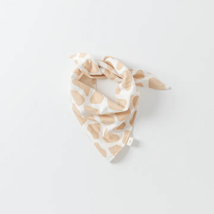 キリン柄のマルチに使えるスカーフビブ -素材の特徴- 肌触りの柔らかなオーガニックコットンを使用。 空気を含んだ生地は柔らかく、伸縮性もあり肌触りも抜群です。 _デザインの特徴_ 色々な使い方で楽しめるマルチスカーフ。 スタイとしてはもちろん、バンダナ風に巻いたり、頭に巻いてバブーシュカとしてファッションのポイントに。 また、バッグに結んだりシュシュとして髪に結んだりと、ママとお子さんでリンクコーデもお楽しみいただけます。 -ポイント- デザインから生産まで全て日本で作られている'All made in Japan'。 職人さんが手作業で印刷を施す’手捺染(てなっせん)’という印刷技法を採用。 機械では出せない色味や、やさしい雰囲気に仕上がっています。