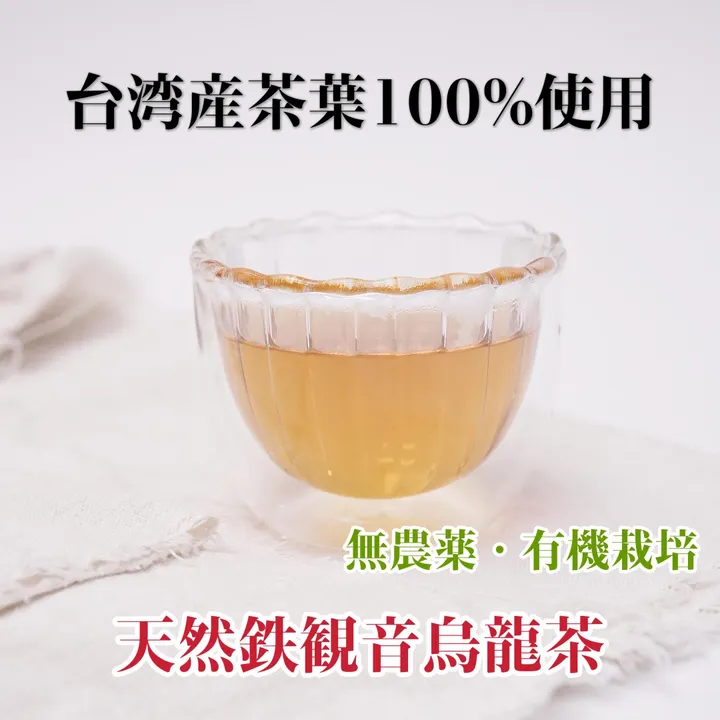 【 台湾産茶葉100%使用 】 天然鉄観音烏龍茶 ⚫︎産地:台湾・新竹県 ⚫︎栽培方法:無農薬・有機栽培 ⚫︎等級・品質:上級 ⚫︎香りと味わい: 台湾の豊かな山間部で丹念に育まれた「鉄観音」は、上品な花のような香りと、深みのある焙煎香が織りなす格別の烏龍茶です。熟練の茶師が時間をかけて仕上げた茶葉は、芳醇で香ばしい香りと、まろやかで奥行きのある味わいを実現しました。渋みが少なく、口当たりはやわらか。飲み進めるほどに旨みが広がり、心を静かに解きほぐしてくれるような余韻が楽しめます。ホットでは香ばしさと華やかさが際立ち、アイスでは爽やかな余韻が心地よく、さまざまなシーンでお楽しみいただけます。 ご自宅での特別なひとときはもちろん、大切な方への贈り物にもふさわしい逸品です。 お茶職人: 徐靖宜氏 306新竹県関西鎮青山街130号