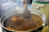 毎日少量ですが60㎝程の小さな打ち出し鍋で直火で職人がその日の気候など見極めながら炊くことで 食材が煮崩れせずに深みのある旨味と甘味が出ています。