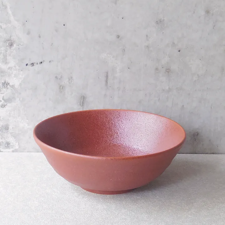 軽量タイプのラーメン丼。備前焼を彷彿とさせるマットで高級感ある落ち着いた褐色が食欲をそそります。担々麺やジャージャー麺など絡みのある麺料理を引き立たせるどんぶりです。 ■有古窯/土岐市駄知 昭和16年、土岐市駄知町に創業。駄知地区で一番大きな量産型メーカーとして稼働しています。常に新しい技術を追い求め最新の設備を兼ね備えています。有古窯でしかできないインクジェットの技術は量産でできる加飾の幅を広げ、国内はもとより海外でも高い評価を受けています。