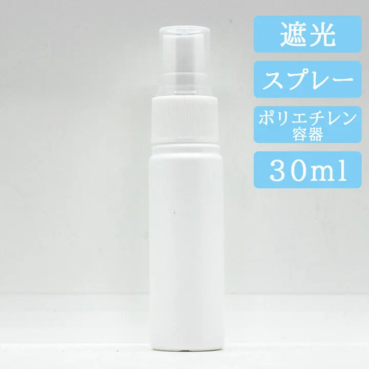 【品名】 プラスチック(白色)製 フィンガーキャップスプレーボトル 【容量】 30ml 【商品説明】 遮光性の高いHDPE(高密度ポリエチレン)製の白色フィンガースプレーボトル。 消毒用アルコールや次亜塩素酸水、アロマスプレー用にお使いいただけます。 ボトルは日本メーカーの国内製造工場、スプレーキャップは日本メーカー提携先の中国工場で製造し、 品質管理もきっちりとおこなっておりますので安心してご使用いただけます。 ※自作のアロマスプレーをお入れになる場合※ ご使用の精油によって、粘度が高い場合にはスプレー時に出にくかったり、 プラスチック容器を溶かす恐れ(特に柑橘系の精油にご注意ください)がございます。 少量で噴霧できるかお試しいただき、できるだけ早く中身を使い切るようにしてお使いください。 【内容】 ボトル、フィンガースプレーキャップ 【生産国】 ボトル:日本、フィンガーキャップ:中国 【サイズ】 口径:20mm、直径:25mm、高さ:112.5mm(キャップ装着時) 【素材】 高密度ポリエチレン(HDPE)