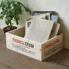 北海道 旭川市の自社工場で製作しています おしゃれな赤と黒のロゴが入った木箱 おもちゃ箱にしたり小物類を無造作に入れてもOK リビングの片隅に置いておくだけで お部屋のインテリア小物としても◎ 新聞や雑誌類の整頓にもちょうど良いサイズ ■商品サイズ 約 横幅410×奥行283×高さ130mm (木によって多少の誤差が出る場合があります) ■材質 天然のパイン材(北海道産)と合板をを使用 節や木目、色合いなどが1つ1つ違います ■仕様 プリント柄は写真で見えている2面に入っています 置く向きによって無地としても使えます 手作業でアンティーク加工をしているので ひとつひとつ仕上がりが違います