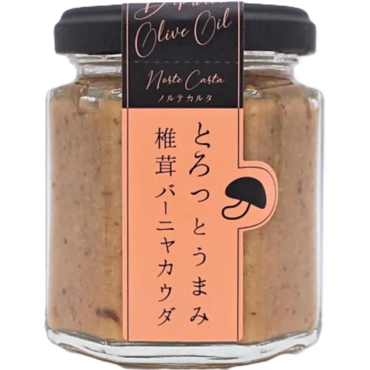 アレルゲン:大豆 栄養成分表示(1個あたり):エネルギー169kcal、たんぱく質4.2g、脂質13.2g、炭水化物8.5g、食塩相当量5.0g 【商品説明】 秋田県産椎茸をペーストにし、味噌、にんにくで和風バーニャカウダソースに仕立てました。 いつもの温野菜や生野菜がおいしくなる、やみつきソース。 ペースト状のため、さまざまなお料理の隠し味にもおすすめです。 ・野菜のディップに ・パンに塗っておつまみトーストに ・アヒージョの隠し味に