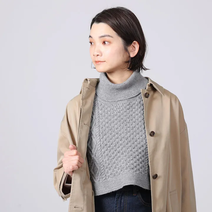 ケープ┃レイヤードを楽しむアラン模様タートルネック GY(グレー)