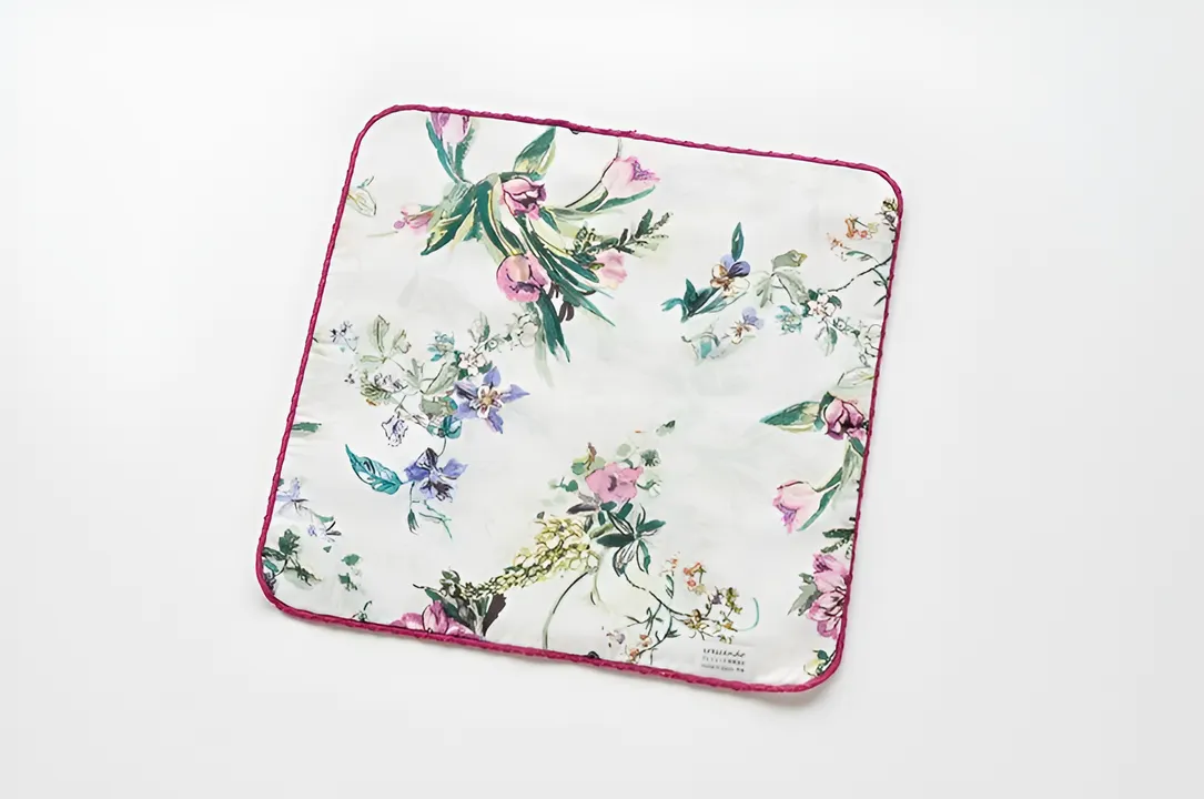 インクジェットの花柄プリントが魅力のタオルハンカチ。 24×24cm、綿100%、日本製、パッケージ入り。 クリア発色のエレガントな花柄が魅力のタオルハンカチ。水彩のように美しいグラデーションはインクジェットプリントならでは。裏面は肌にやさしく吸水性の良い今治タオルを使用。薄手でかさばらず、使いやすい。パッケージ入りでプレゼントにもおすすめ。