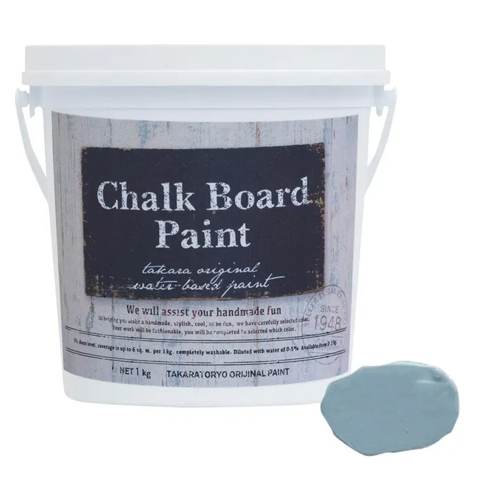 当店オリジナルの黒板塗料「Mint Blue(ミントブルー)」です。 木部、外壁、内壁、壁紙、建具などに塗装できます。 【用途】 木工作品、屋内外のモルタル壁、厨房、天井、石こうボード、壁紙等 黒板塗料としてはもちろん、汚れの落ちやすい性質から子供部屋などにも最適です。 【特徴】 ・内外装建築用として使われます。 ・水で薄めて使えます。 ・3分艶です。 ・乾燥後は水にも強く、溶けません。 【使用方法】 ・素地の調整は、確実に行ってください。 ・古い壁面に、カビなどが発生している場合は、カビとり剤などで充分に処理してください。 ・チョーキング(白い粉が吹いたような状態)を起こした壁は、含浸シーラーを使い、古い壁を固めてから塗装してください。 ・塗料が伸びにくい時は水で薄めて使用してください。 【うすめ率:水】 ・刷毛・ローラー塗りの場合:0-5% ・エアスプレーの場合:10-15% 【乾燥時間】 ・指触乾燥時間(触って指につかなくなるまでの時間):30分 ・硬化時間:2時間 【塗装性状】 ・耐水性 30日以上 変化なし ・耐酸性 30日以上 変化なし ・耐アルカリ性 48時間以上 変化なし ・耐洗浄性 500回以上 【塗装上の注意】 ・気温5℃以下での使用は避けてください。 ・塗装用具は使用後直ちに水で洗って下さい。一旦乾くと、再び水に溶けません。 【参考小売価格】 ・200g 1800円 ・1kg 4980円 ・2kg 9500円 ・3kg 12450円 ・4kg 15800円 重量:約1100g Pサイズ:W130×H125mm 【塗れる面積】 -3m2
