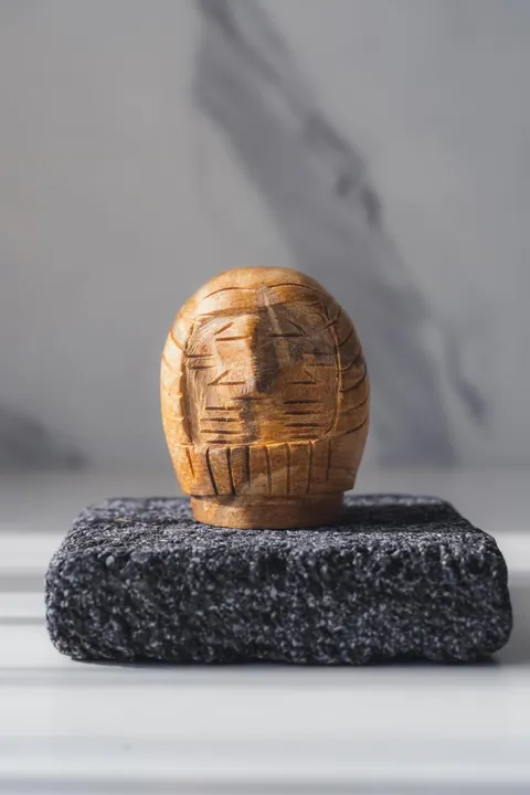 パロサントの木材から、一つ一つ職人が削り出して作った置物。 日本で古くから縁起物として重宝されている達磨、通常は紙で作られることが一般的です。しかし今回#Divinaでは、聖なる樹と崇められ魔除けとして使用されているパロサントを原料として使用し、そこにペルーの職人の再解釈を加えることにより、新しいスタイルを作り出しました。 見かけは普通の木彫りの人形ですが、パロサントなだけあって、置いておくだけでも強い香りがします。もちろん長期間時間が経過すれば香りは弱まりますが、その際には細かめの紙やすりで優しく磨くと香りが復活します。 すべて手作業なため、表情やボディの形状は個体差が大きいです。 *商品写真の位置枚目にある石の台座は付属しません。 *パッケージはございません。緩衝材で梱包して発送いたします。