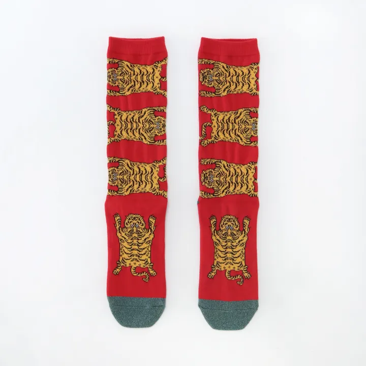 当店では、タイガーシリーズが人気です! 自分自身も一年ほど愛用していますが、デザインもオシャレなうえ ヨレたり伸びたりせず、とにかく生地と縫製がしっかりしているので、 安心してお客様にお勧めできます。 ブランドストーリーや商品説明文も含めてお話しすると、 奈良産の靴下に興味を持っていただけて嬉しく思っております。 今後とも、よろしくお願いします。