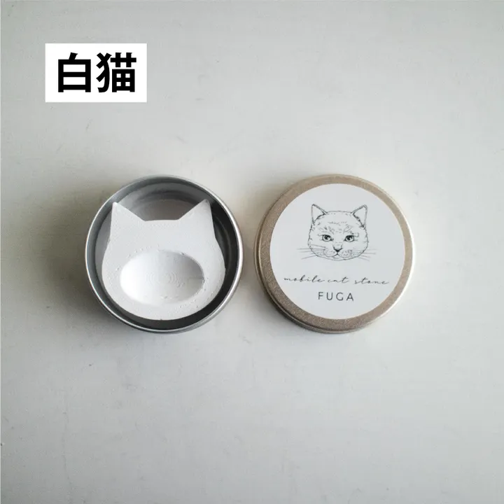 『 持ち運べる小さな猫缶アロマストーン 』 小さな缶に入った、持ち運びに便利なアロマストーン。 精油を滴下すると1日〜数日香り続けます。 猫モチーフ好きの方にぴったり。 凹みに、精油を垂らしてお使いください。 【 アロマストーンとは? 】 精油を滴下するだけで香りを楽しめる芳香器。 半径1m程度の空間でふわっと優しく香ります。 電気・火・水を使わないためエコで、 デスクやベッドサイドでも気軽に使うことができます。 お手入れの必要もありません。 香りが充満しないので、 強い香りが苦手な方にもおすすめです。 また、香りは1日〜数日程度で消えてゆきます。 そのため1つのアロマストーンで色々な香りをお楽しみいただけます。 【 SIZE 】 缶:直径5.2cm×高さ2.5cm 【 DETAIL 】 小さな猫ちゃんを缶に閉じ込めました。 愛猫の毛色に合わせて選んだり、猫好きなあの人へのギフトに。 お顔の凹みに精油を垂らして香りをお楽しみください。 小さなカバンやポーチに入れやすいモバイルアロマストーンです。 ストーンは缶に接着されています。 お好きな毛色をお選びください。 *白猫 *茶トラ *サバトラ *三毛猫 *ハチワレ(白地に黒のハチワレ) *黒猫 ひとつひとつ手作り・手塗りしていますので、色の濃淡など仕上がりに若干の差が出ます。 予めご了承ください。 【 おすすめの使い方 】 ✔︎持ち運んで、外出先でアロマを楽しみたい時に ✔︎勤務先のデスクに置いて、仕事中の気分転換用に