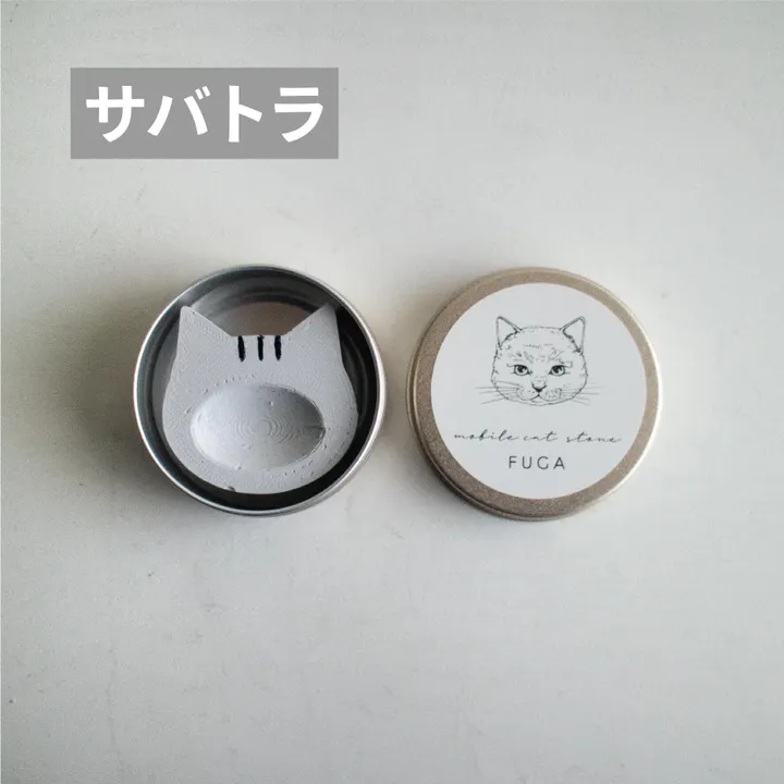 《持ち運べる》猫缶アロマストーン|外出先でも香りを楽しむ猫モチーフ缶 サバトラ