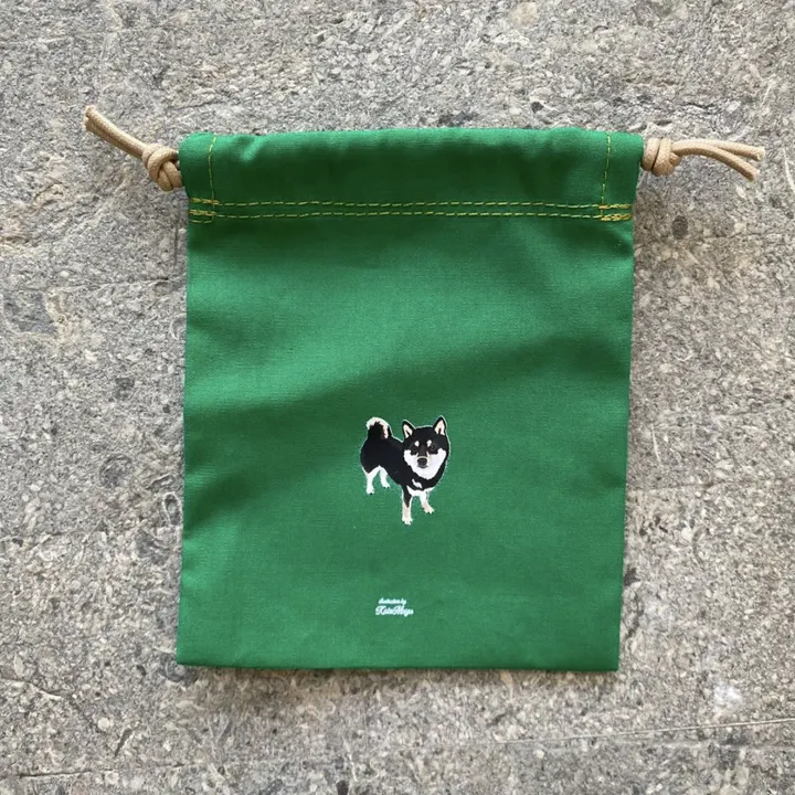 【Mサイズ 巾着 / 薄手生地】 オリジナルイラスト わんこ巾着 小さい巾着 プレゼントに◎ 柴犬
