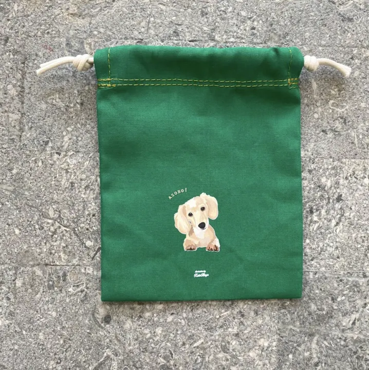 【Mサイズ 巾着 / 薄手生地】 オリジナルイラスト わんこ巾着 小さい巾着 プレゼントに◎ ミニチュアダックス