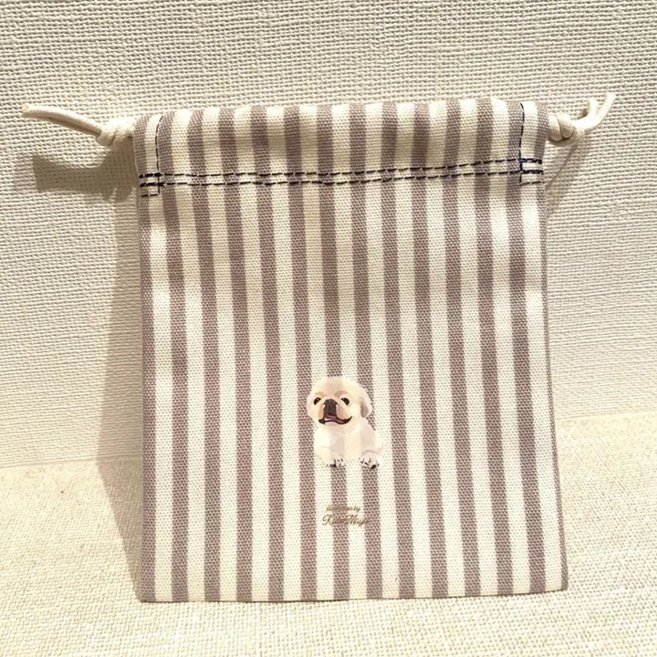 【Mサイズ 巾着 / 薄手生地】 オリジナルイラスト わんこ巾着 小さい巾着 プレゼントに◎ ペキニーズ
