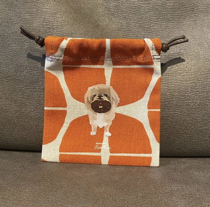 【Mサイズ 巾着 / 薄手生地】 オリジナルイラスト わんこ巾着 小さい巾着 プレゼントに◎ ペキニーズ (約105mm × 100mm)