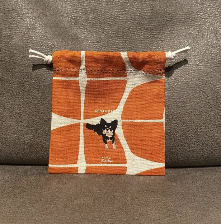 【Mサイズ 巾着 / 薄手生地】 オリジナルイラスト わんこ巾着 小さい巾着 プレゼントに◎ チワワ(約105mm × 100mm)