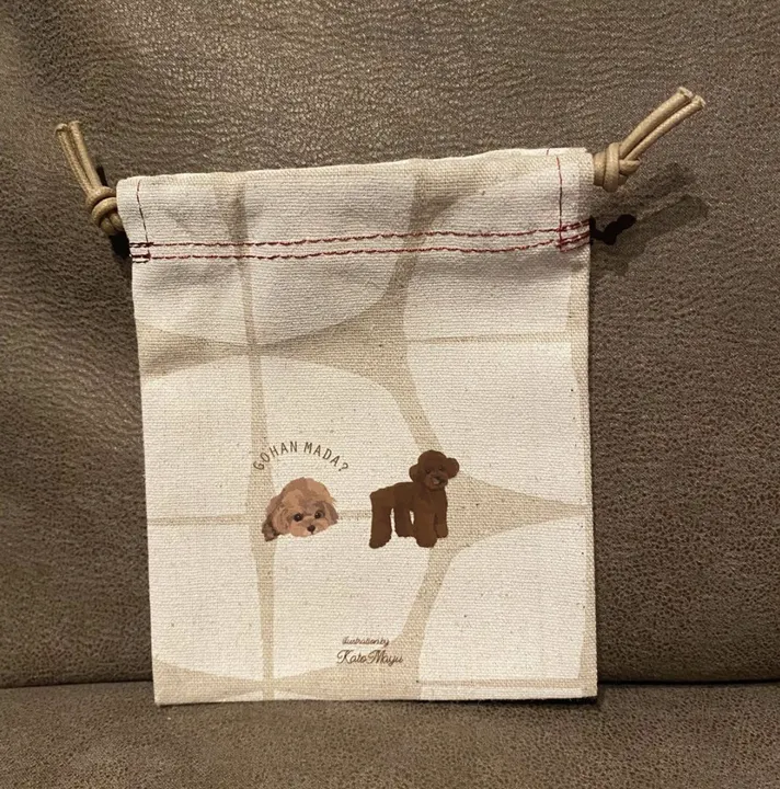 【Mサイズ 巾着 / 薄手生地】 オリジナルイラスト わんこ巾着 小さい巾着 プレゼントに◎ トイプードル