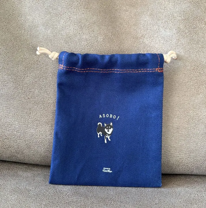 【Mサイズ 巾着 / 薄手生地】 オリジナルイラスト わんこ巾着 小さい巾着 プレゼントに◎ 柴犬 (約130mm × 110mm)