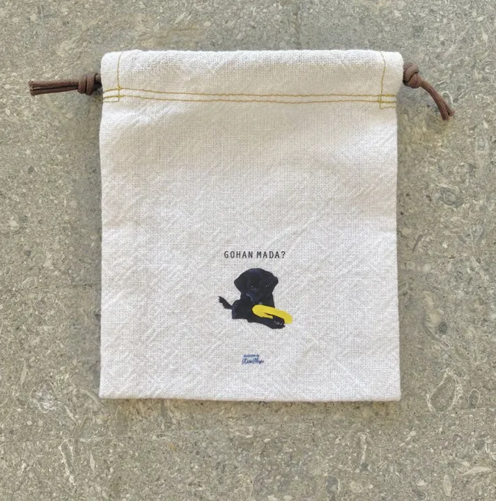 【Mサイズ 巾着 / 薄手生地】 オリジナルイラスト わんこ巾着 小さい巾着 プレゼントに◎ ラブラドールレトリバー (約130mm × 110mm)