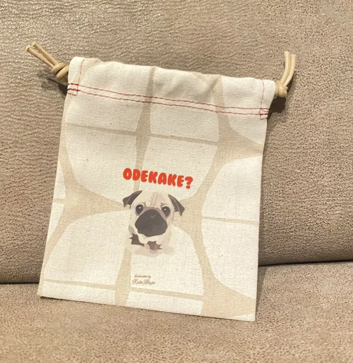 【Mサイズ 巾着 / 薄手生地】 オリジナルイラスト わんこ巾着 小さい巾着 プレゼントに◎ パグ