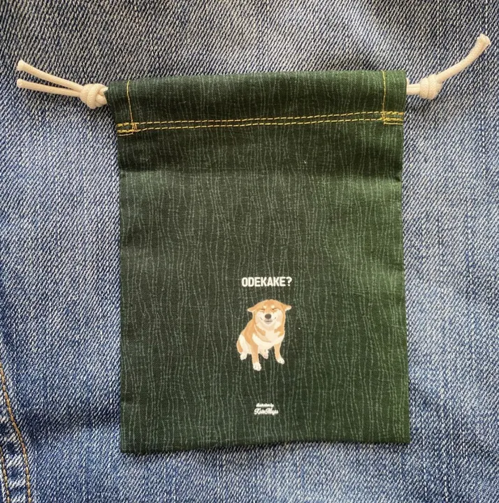 【Mサイズ 巾着 / 薄手生地】 オリジナルイラスト わんこ巾着 小さい巾着 プレゼントに◎ 柴犬 (約135mm × 105mm)