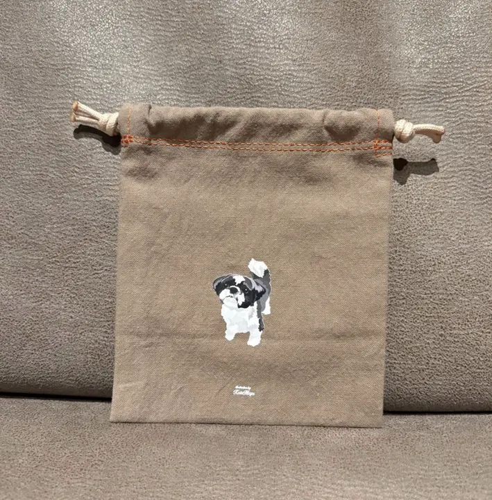 【Mサイズ 巾着 / 薄手生地】 オリジナルイラスト わんこ巾着 小さい巾着  プレゼントに◎ シーズー (約130mm × 115mm)