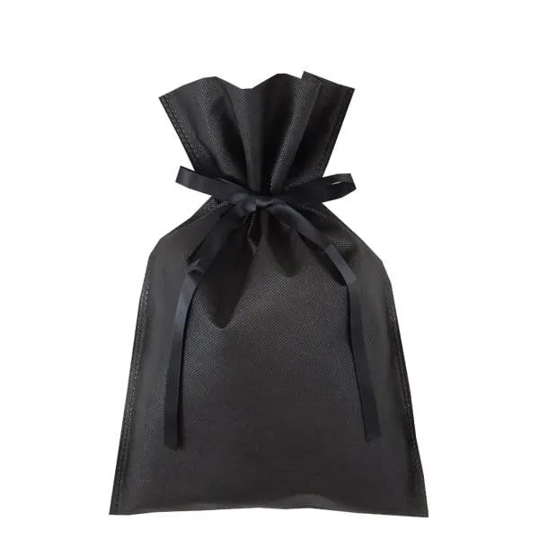 不織布ギフトバッグSサイズ 不織布ポーチサテンリボン付き マチ無し 100枚入り LC960 ブラック