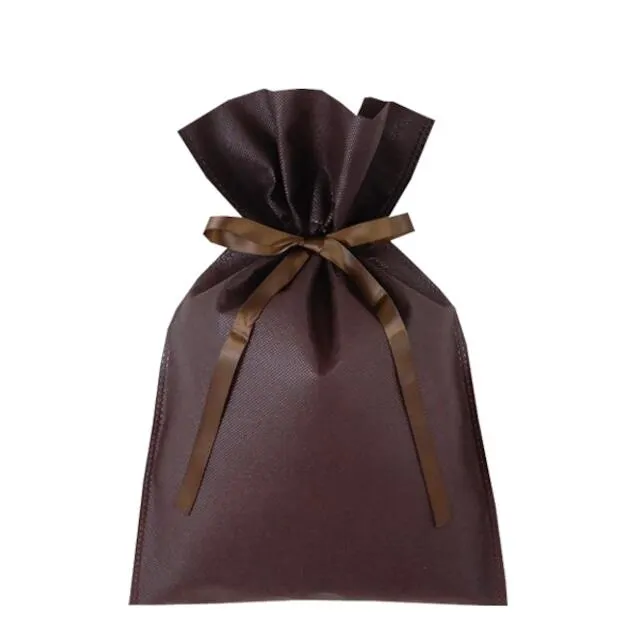 不織布ギフトバッグSサイズ 不織布ポーチサテンリボン付き マチ無し 100枚入り LC960 ブラウン