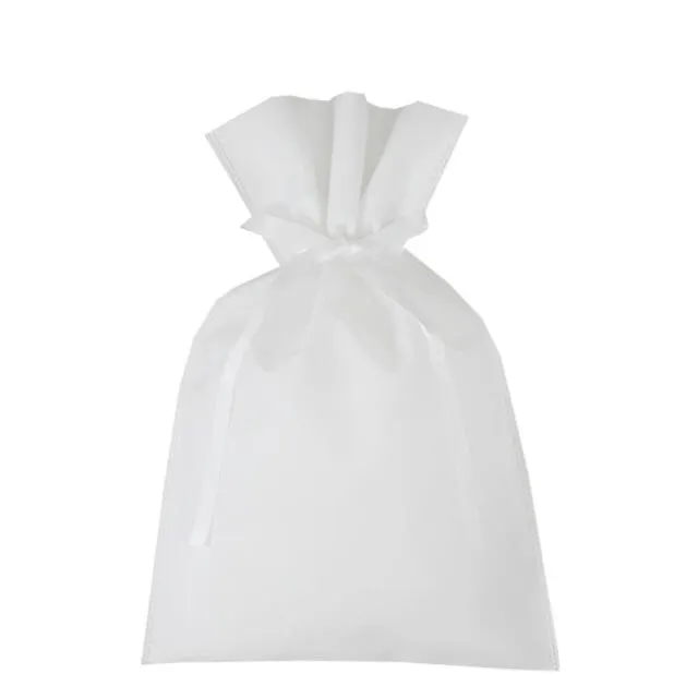 不織布ギフトバッグSサイズ 不織布ポーチサテンリボン付き マチ無し 100枚入り LC960 ホワイト